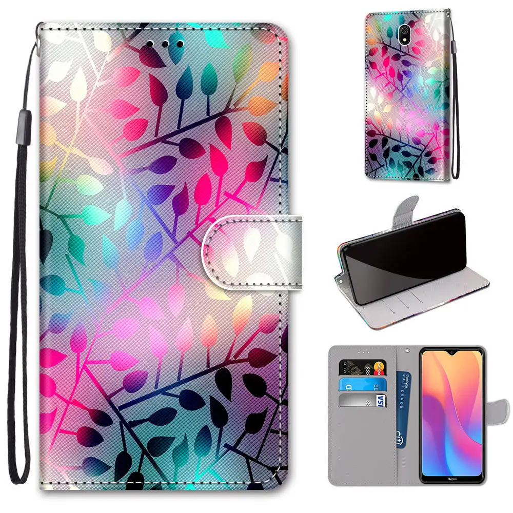 Модный чехол для телефона с цветами для Xiaomi Redmi Note 4 4X 4A 5 5A 6 6A 7 7A 8 8A 8T Pro 3S GO, кожаный чехол-книжка с откидной крышкой