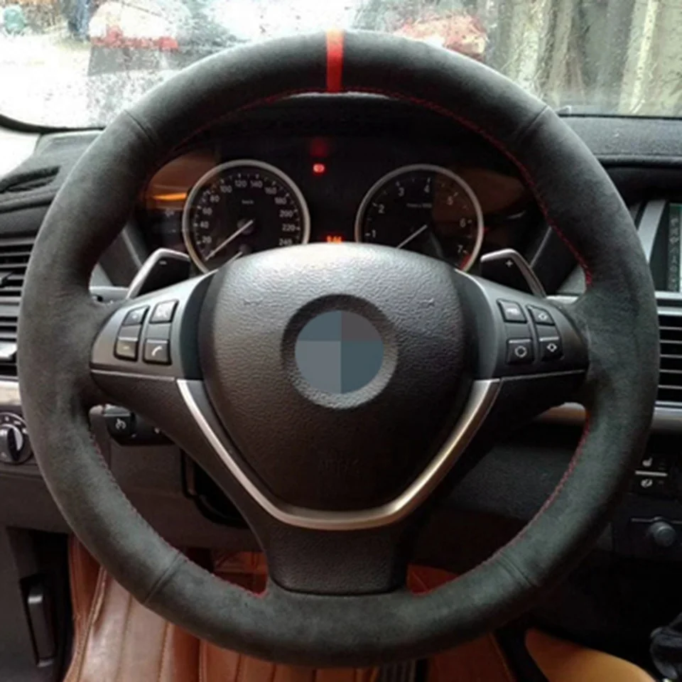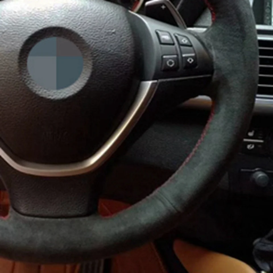 Сшитая вручную черная замша чехол рулевого колеса автомобиля для BM...