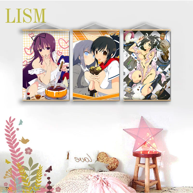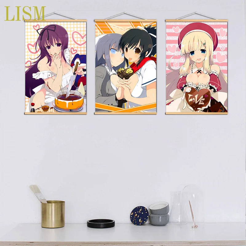 Настенный постер Senran Kagura в виде шоколадного аниме манги на День святого Валентина, подвесной свиток из массива дерева с рисунком на холсте