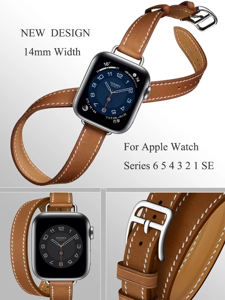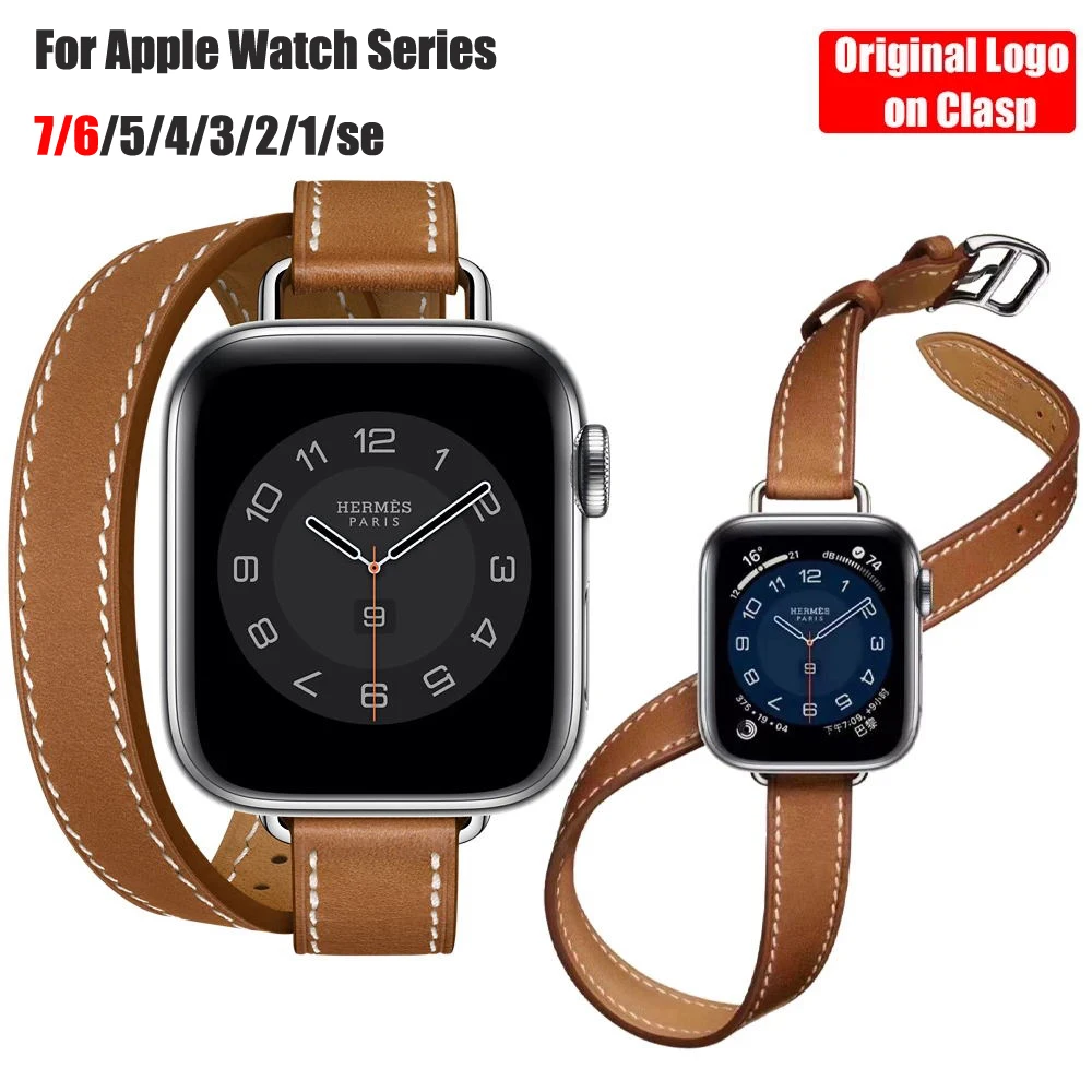 1x Geuine двойной тур кожаный ремешок с адаптерами для Apple Watch серии 7 6 5 4 3 2 1 SE 45 мм 41 мм 44 мм 40 мм 42 мм 38 мм (Apple Watch не входит в комплект)