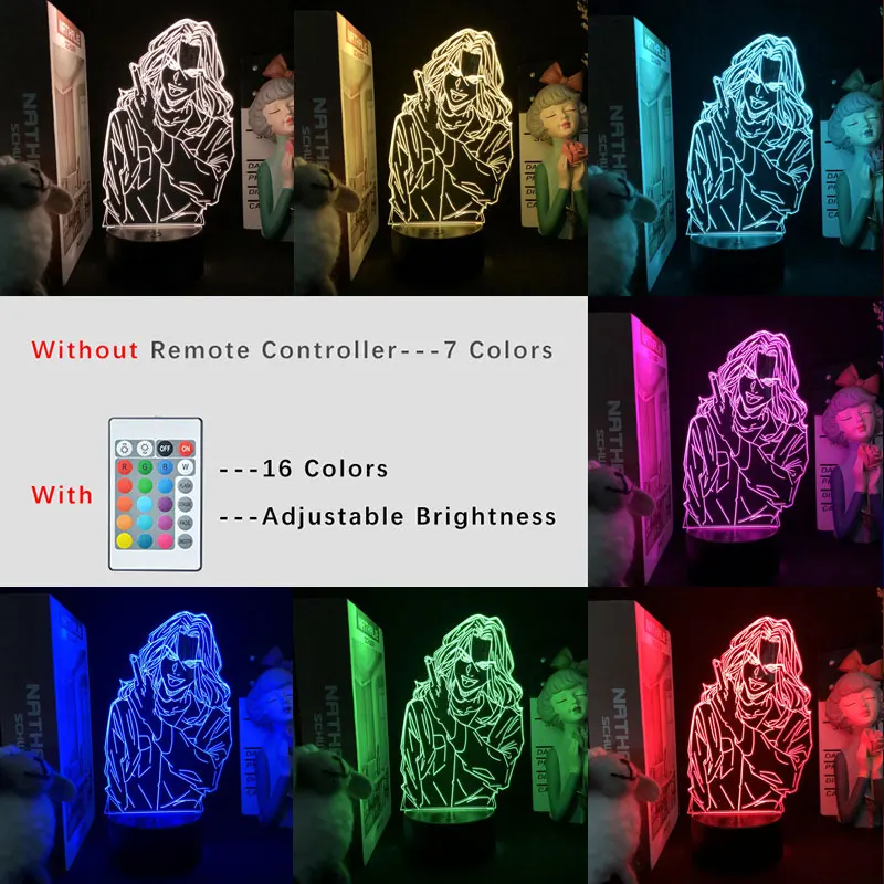 Это удивительный художественный декор для украшения спальни.Лампы высотой около 20 см и могут осветить ваше пространство 7 разными цветами (красный, желтый, зеленый, голубой, синий, фиолетовый, белый) и множеством различных оттенков.Каждая лампа поставляется с твердым полимерным основанием, в котором находятся батареи 3AA и usb-кабели и в 2 различных видах-твердая черная/трещина лава.Вы получите то, что выберете. Основание черной лампы: только восходящее освещение, и он выделит векторный график.Основание лампы лавы: светильник излучает все направления и дает кристально чистый светильник. 7 цветов без пульта дистанционного управления:Если вы минималистичный и предпочитаете Базовые цвета, вы можете выбрать наш сенсорный вариант, в котором вы можете изменить цвет одним касанием на основе. 16 цветов с пультом дистанционного управления:Чтобы выбрать больше цветов и режимов освещения, вы можете перейти к нашему удаленному типу.С помощью пульта дистанционного управления вы можете легко переключать цвета, регулировать яркость, оттенки, а также иметь другие варианты, такие как позволяет цветам выцветать друг в друга и контролировать скорость цветовых переключателей, если вы хотите. Наши 3D лампы с лазерной гравировкой делают идеальный подарок на Рождество, день рождения, новый год или дом теплым для ваших друзей аниме-ботаников!Обязательно оставьте нам отзыв о Вашем товаре и не стесняйтесь обращаться к нам по любым вопросам с вашим заказом! Обратите внимание:● Перед вставкой в основание снимите защитную пленку с поверхности как спереди, так и сзади.● Чтобы не оставлять отпечатков пальцев на акриле, удерживайте доску на кромке, а не на поверхности.