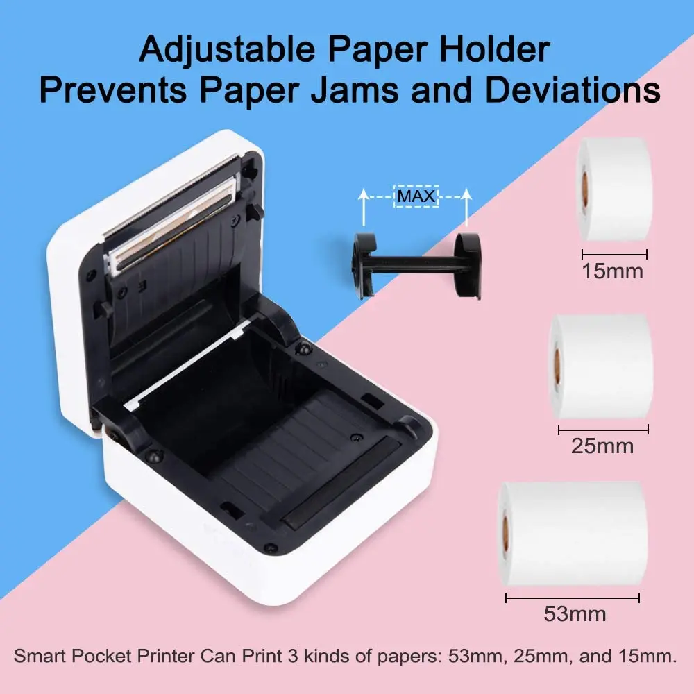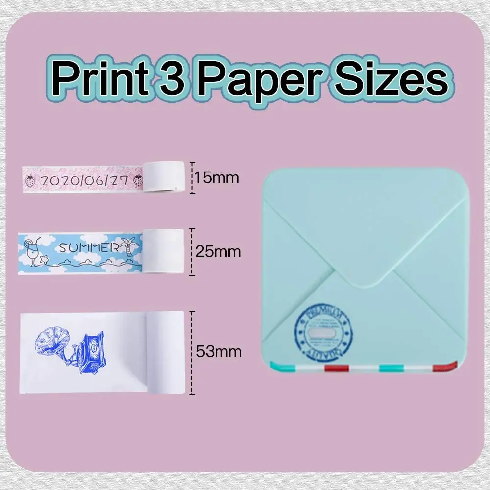 Принтер Phomemo M02S совместим с 3 ярлыками размеров: 15 мм, 25 мм и 53 мм. Печать в соответствии с вашими потребностями, нет необходимости тратить время, чтобы вырезать бумагу.