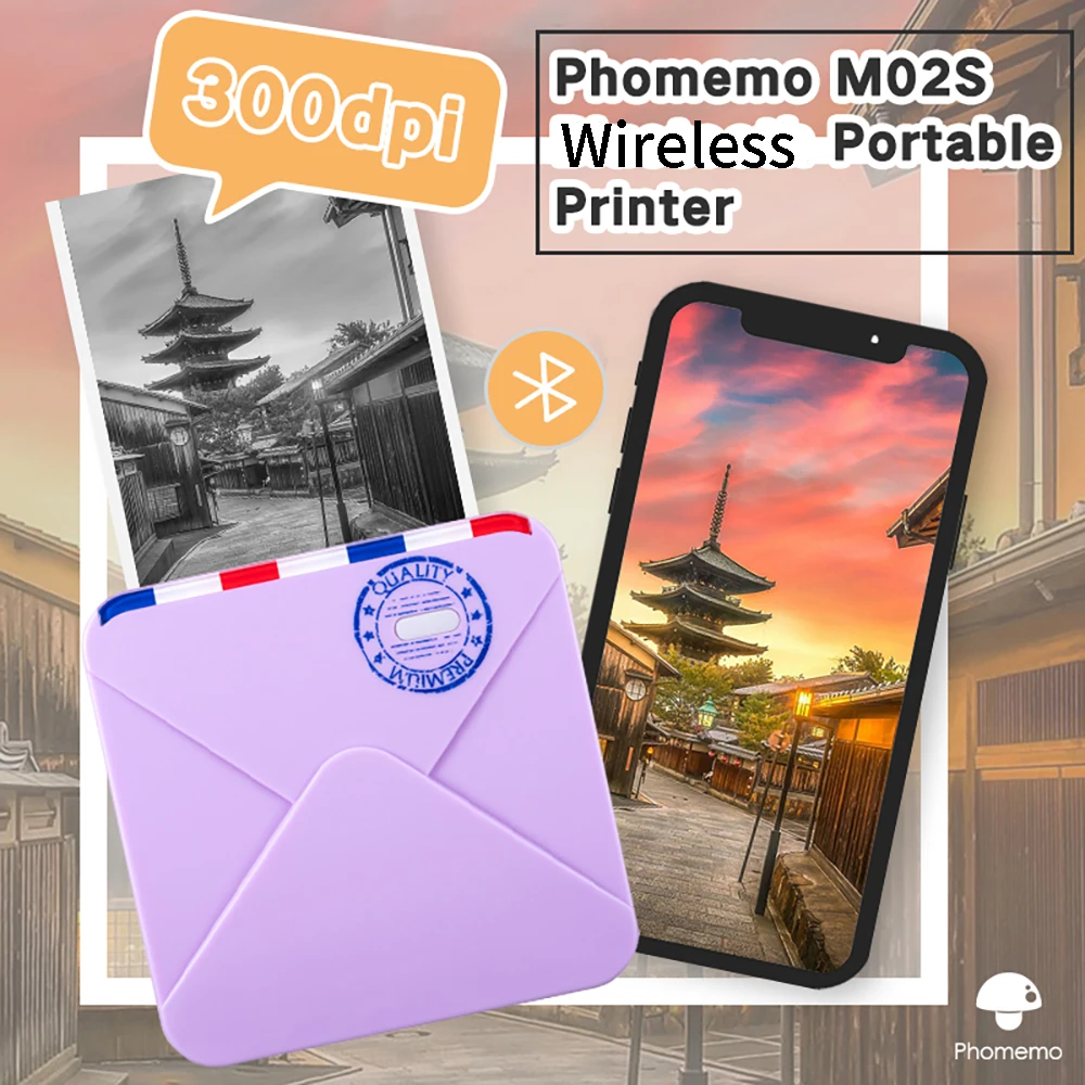 Мини-принтер Phomemo M02S, 300 точекдюйм, беспроводной карманный Термопринтер для фотографий, журнал, организация, учебная заметка сделай сам