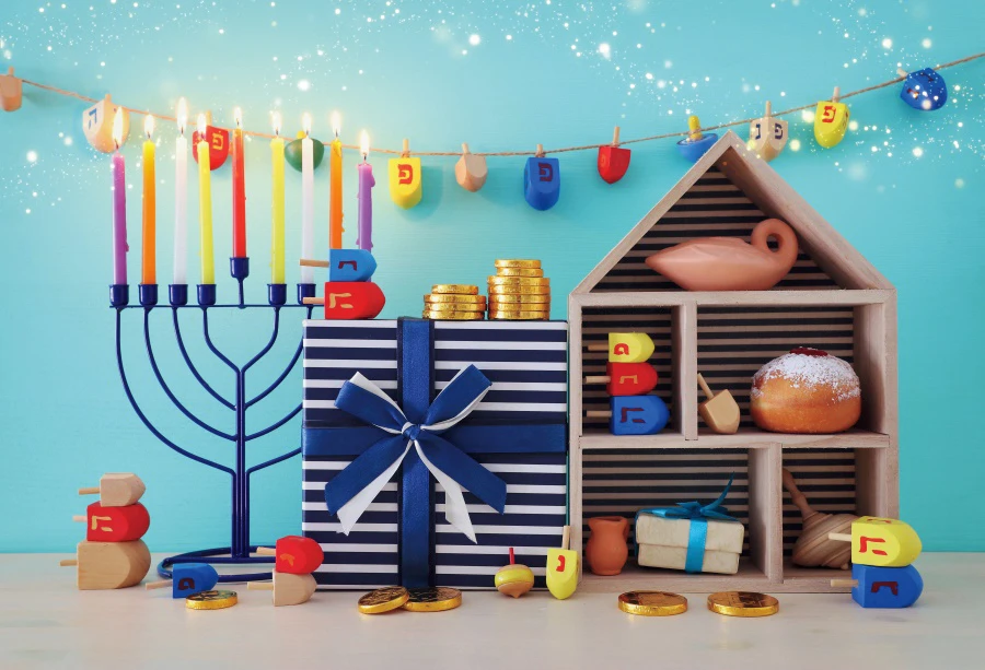 Счастливая Ханука фон Ханука еврейские праздники новогодний красочный подсвечник фон для фотографий реквизит для фотостудии баннер