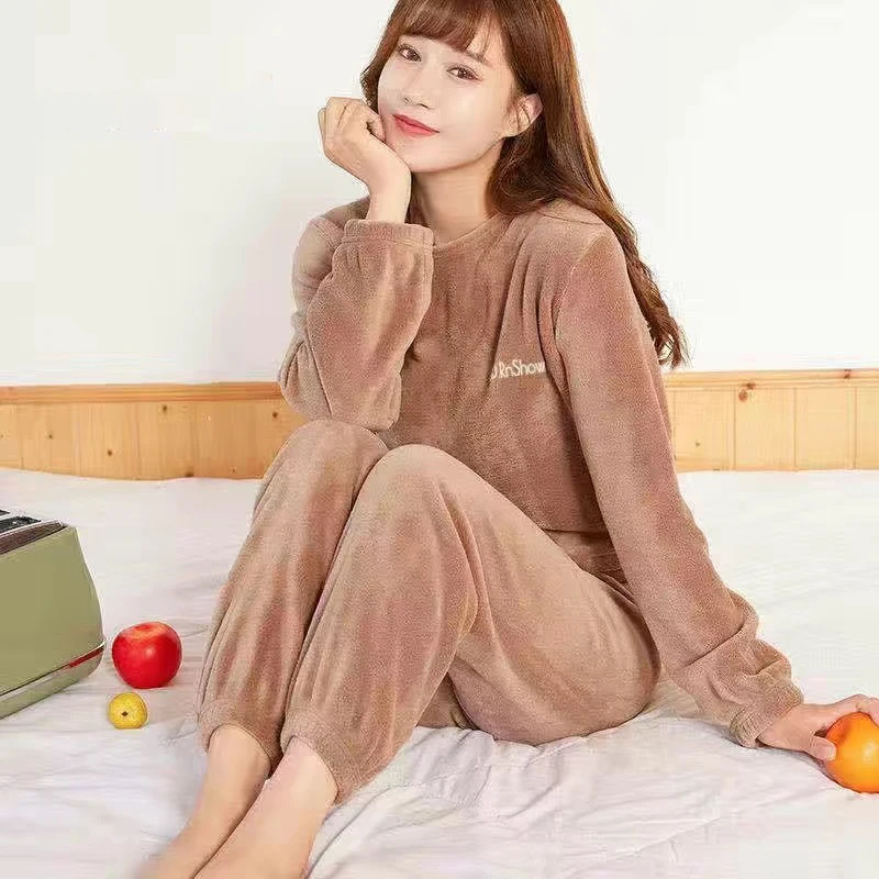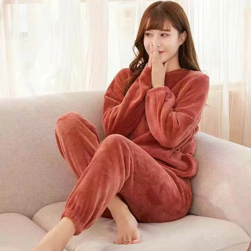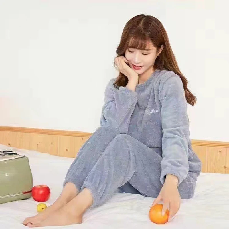 Популярный женский пижамный комплект 2022, зимняя утепленная женская теплая свободная повседневная одежда из кораллового флиса с длинными рукавами для дома