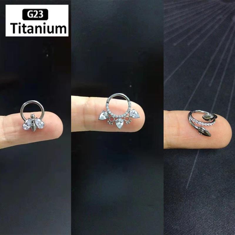 F136 титановый пирсинг Daith Honeybee циркониевые высокие сегментные кольца Clicker открытый маленький перегородка пирсинг для носа кольцо серьги пирсингсептум титан