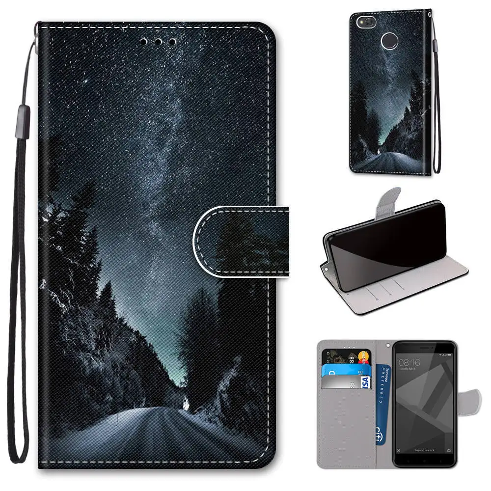 Кожаный чехол-книжка для телефона Redmi Note 5 5A Pro Plus с изображением цветов и милого кота