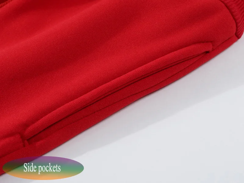 Зимний комплект с худи для мужчин, модные флисовые красные толстовк...