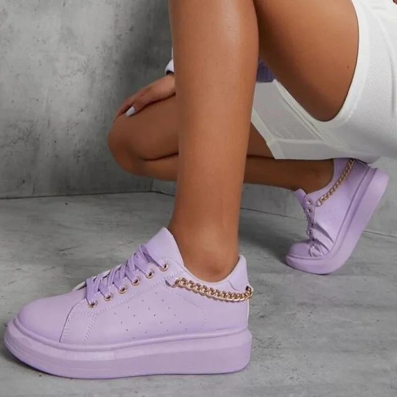 Женские кроссовки с низким верхом, повседневная Нескользящая спортивная обувь на плоской подошве, с цепочкой и круглым носком, осень 2021
