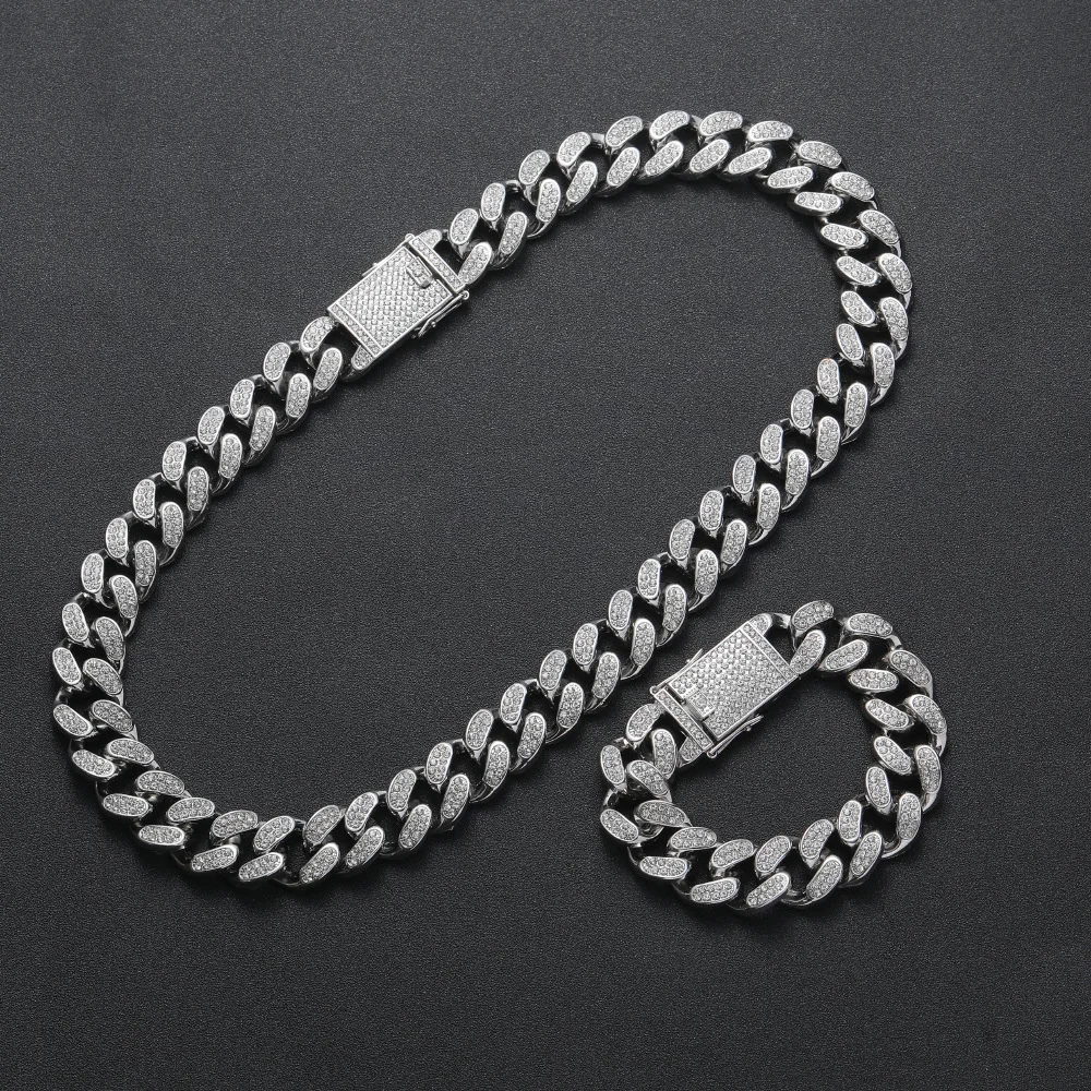 Цепочка мужская из кубинской панцирной цепи Майами с кристаллами, 19 мм