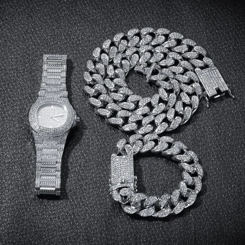 Набор из колье + часы + браслет AITIEI, кубинская цепочка Майами, с...