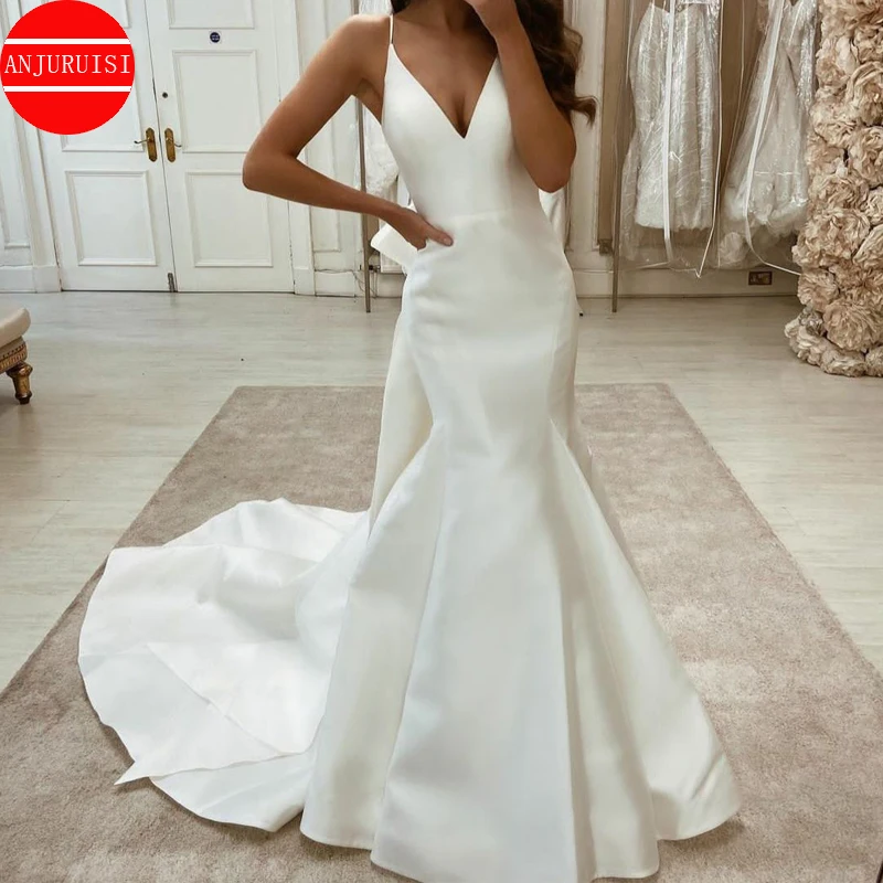 Женское атласное свадебное платье, ТРАПЕЦИЕВИДНОЕ ПЛАТЬЕ С V-образн...