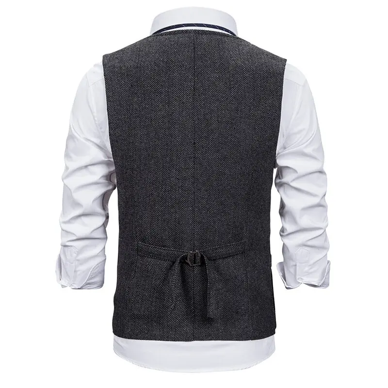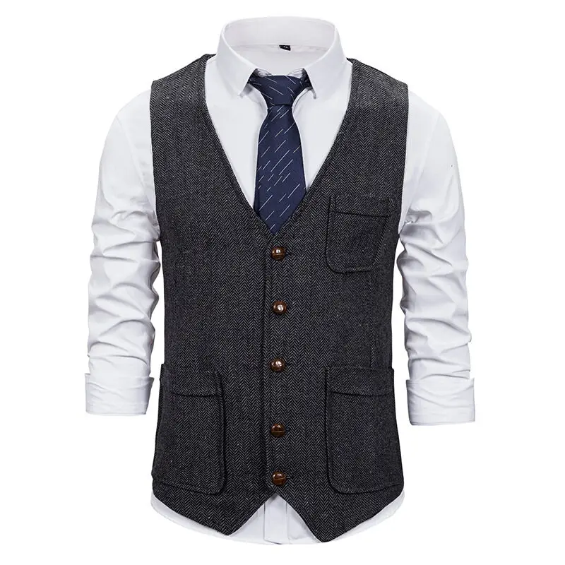 Жилет для мужчин, повседневный жилет с двумя карманами в елочку, дл...