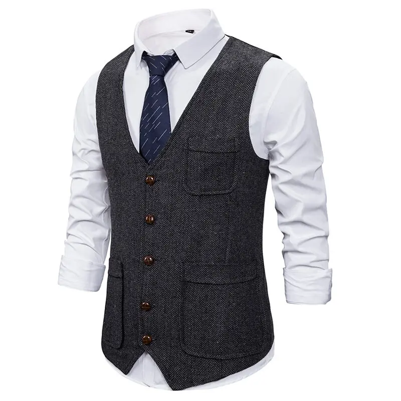 Жилет мужской шерстяной, Приталенный жилет, однобортный смокинг, дл...