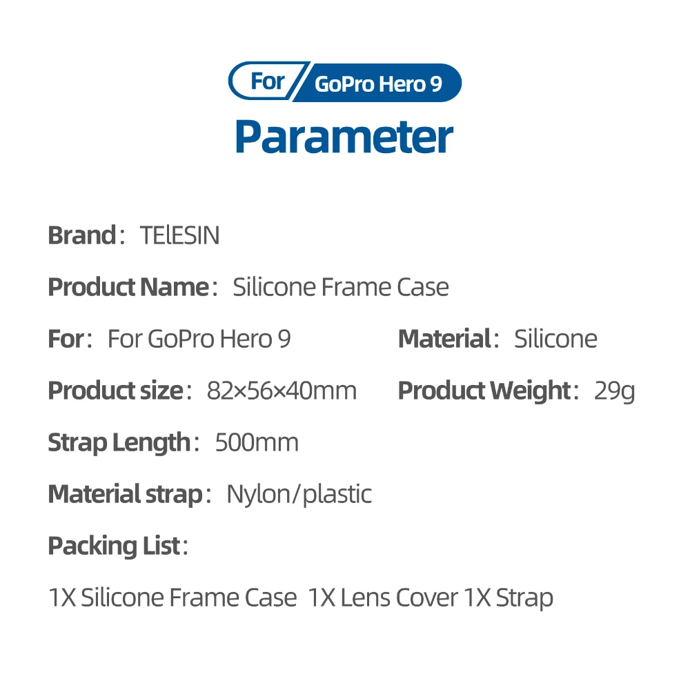 Мягкий силиконовый чехол TELESIN для GoPro 10 9, крышка объектива, синяя, черная, регулируемая ручка, ремешок на запястье, аксессуары для GoPro Hero 10 9 Black