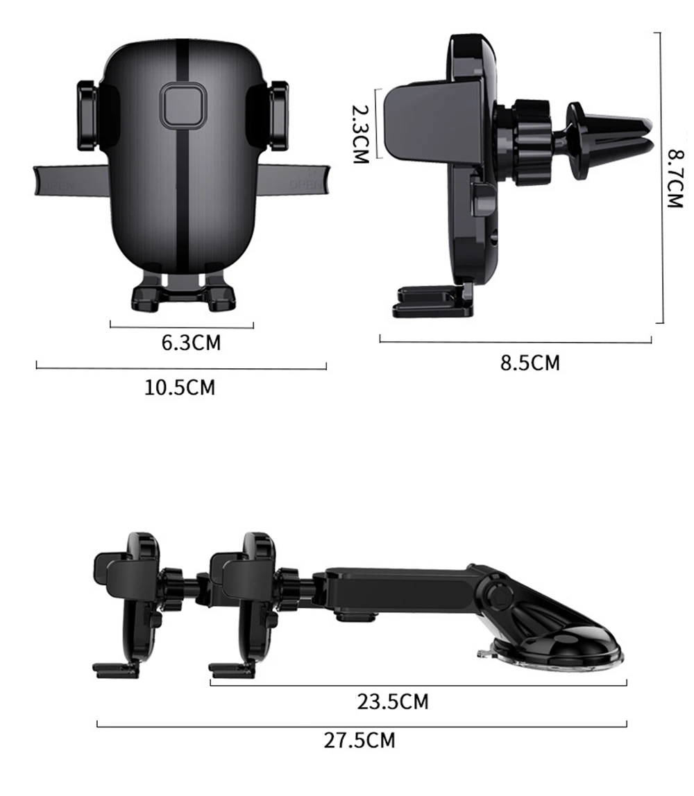 1. Легкий дизайн, подходит для 3-7 дюймов мобильный телефон s, может быть установлен на приборной панели, зеркало заднего вида и солнцезащитный козырек (советы: этот мобильный телефон держатель можно использовать дома)