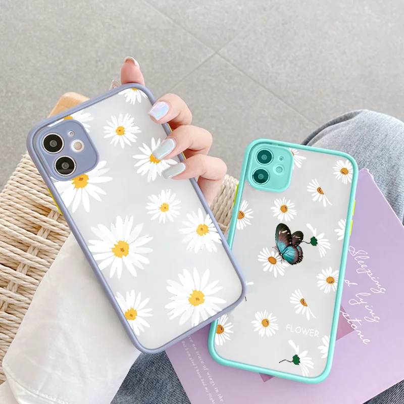 Роскошный чехол для iPhone 11 с цветочным узором и ромашками, жесткий прозрачный чехол для iPhone 12 13 Pro XS Max Mini 7 8Plus XR SE 2020 X