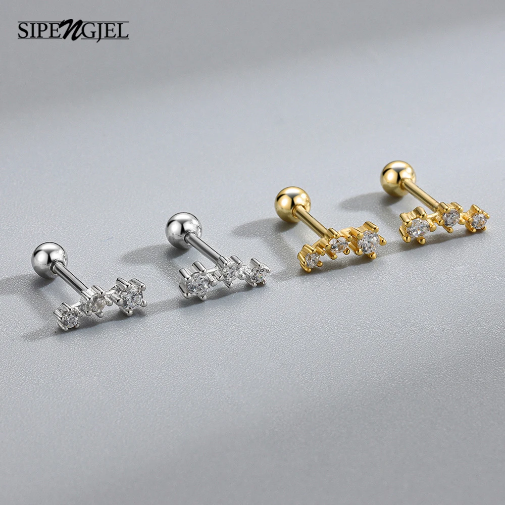 Модные серьги-гвоздики SIPENGJEL с кубическим цирконием, милые серьги-гвоздики для пирсинга, маленькие серьги-хрящи для женщин, ювелирные изделия