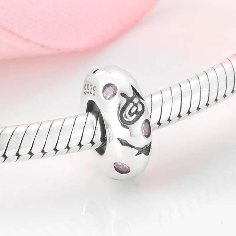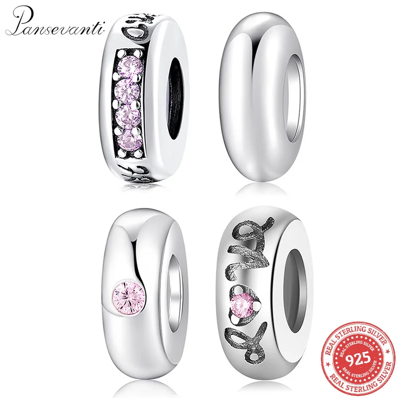 Разделительные шарики из стерлингового серебра S925 пробы, шариковый поршень, розовый бриллиант, универсальный браслет, браслет, аксессуары сделай сам, рассыпчатые бусины