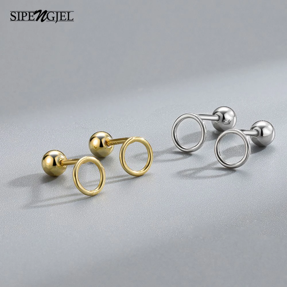 SIPENGJEL Модные Изящные круглые серьги для пирсинга из нержавеющей стали, мини-серьги-гвоздики для женщин, свадебные ювелирные изделия