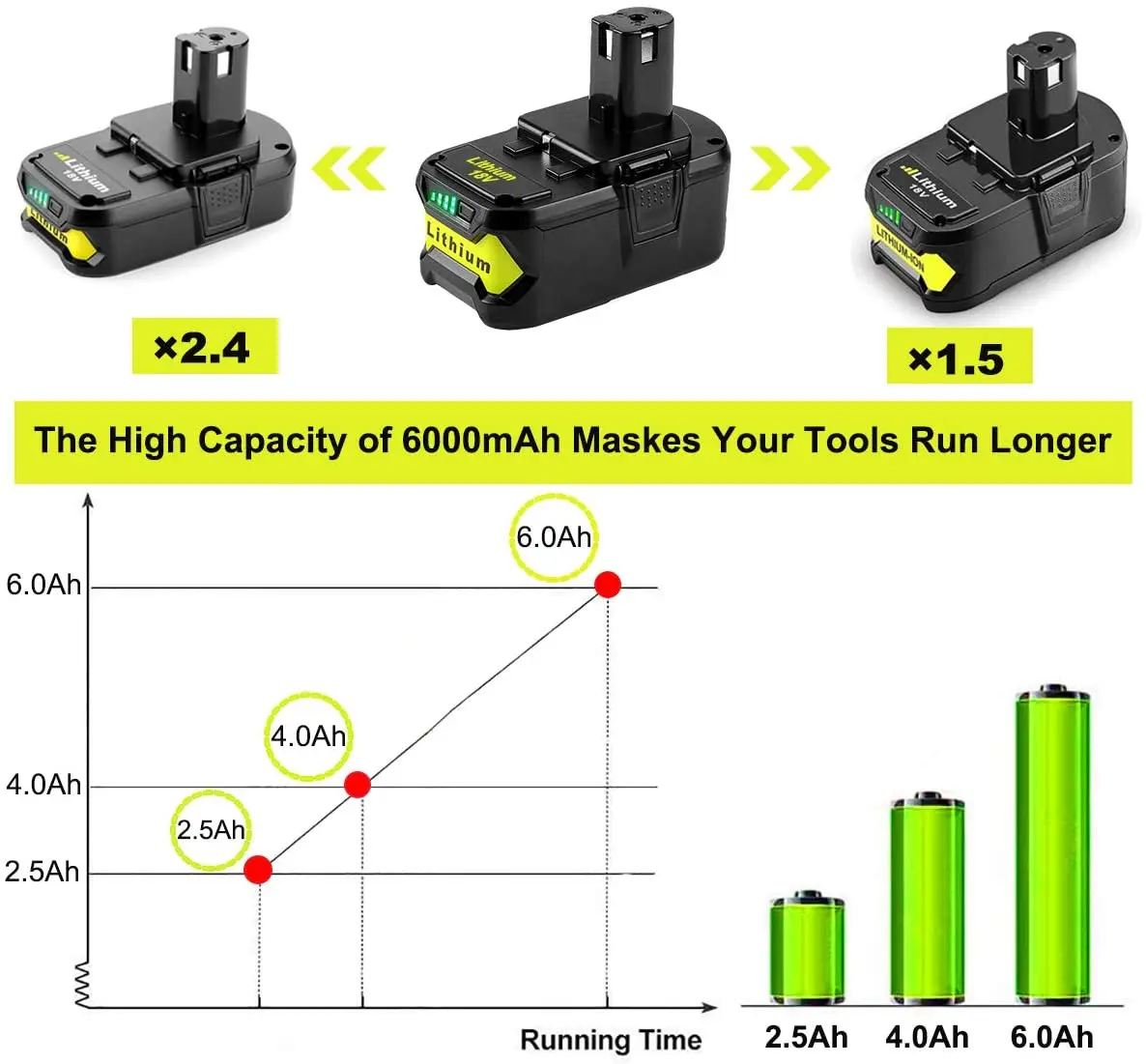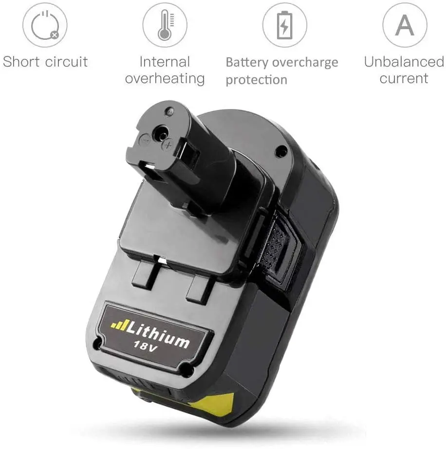 Зарядка в любое время не повлияет на аккумулятор.Аккумулятор большой емкости Ryobi 18V обеспечивает в четыре раза больше времени работы.В 4 раза дольше длительной зарядки и на 20% легче, чем Ni-Cd батареи.CE UL FCC и RoHS сертифицированы.Оснащен защитой звезды от перезарядки, перегрузки, перегрева и короткого замыкания