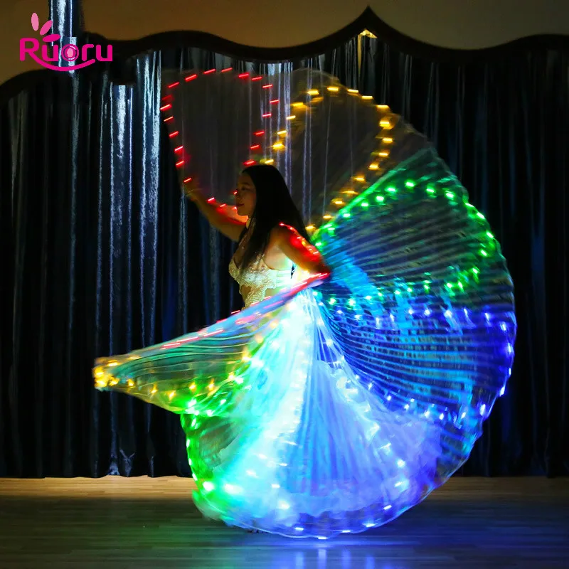Светодиодные Крылья Ruoru для женщин и девушек, светодиодный костюм в виде бабочки для Хэллоуина, Рождества, танца живота, Светодиодные Крылья Исиды с регулируемой палочкой