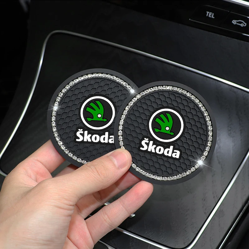Автомобильный нескользящий коврик, подставка под бутылку с водой и бриллиантами, для Skoda Octavia A5 A7 Fabia Rapid Yeti Kodiaq, автомобильные аксессуары