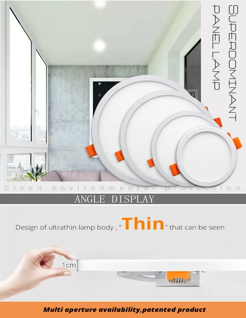 Ультратонкая Встраиваемая светодиодная панельная лампа, круглая квадратная потолочная панельная лампа для поверхностного монтажа, 220 В переменного тока, 6 Вт, 8 Вт, 15 Вт, 20 Вт