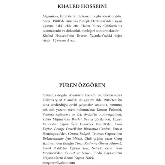 Тысяча великолепных солнечных лучей-Халед хоссейниВпервые в 2007 году напечатала тысячу великолепных солнечных лучей, охотник за змеями для ее романа во всем мире большой известности и удивительного успеха, победившего в жизни Афган-писателя Халеда хоссейнийе. Второй авторский роман «Тысяча великолепных солнечных лучей»; Оригинальное имя «Тысяча великолепных солнечных лучей», «Охотник за воздушными змеями» снова как «Книга места рождения авторского писателя»-это «topraklar afganistan'i». Everest Türkiye'de был впервые напечатан в 2008 году в печатных изданиях trace, наш язык Püren озгёрен переведен.Ожидаемый роман"Этот город освещает айларыни и не скрывается за стенами тысячи великолепных солнечных лучей!"Ожидаемый лозунг «Роман» представлен читателю тысячу великолепных солнечных лучей от писателя, который страдал женщины, живущие в Афганистане, является родиной общественного давления, тяжелых боевых условий, развития политики, О смене режима и даятмалары при испытаниях в отношении людей, переживаемых в этой стране. Гейрымешру, как ребенок из мира и "харами называется" Дева Мэри и вся его семья в бою, теряя все одинокие Калан Лейла персонажи через anlatыlan hikâyede, Община женщин, живущих в Афганистане, конумларина акцентируется во время событий и в стране, люди катаклизмов дрейфующий режим меняется при реальной хронологической сортировке и успешном мероприятии представлен читателю с косичкой. Человеческая психология оказывает разрушительное влияние, романы, чарезилайклер, мекбуриетлер, женятся в детском возрасте на девочках и мальчиках из-за гегемонии угнетенных писателей женских адресов, сногсшибательный проект, в котором романында различные боли жила два женских перекрестных пути, имеют глубокие узы дружбы и даянышмаларыни друг с другом. Большое внимание читатель гёрен книга, список бестселлеров.О автореОригинальная Профессиональная Медицинская докторлугу-всемирно известный писатель Халед хоссейни, все человеческие чувства, сильная ручка, лучшие писатели. Afghanistan born writer, first kitabiyla a World success atыnca original Action is doktorlugue leaving anlamiyla был направлен на книги. Охотник на змей из романа после тысячи великолепных солнц и гор, книги янкиланды, написанные и мировые рейтинги в списке лучших продавцов, входят в список carters. Был рожден и жил в книгах географии в соответствии с реальностью впечатляющего dille, упоминающего писателя, американца, как американский sürdümektedir, живет в штате Калифорния.Куда бы вы ни отправились, ваш доход в вашей стране. В данный момент, когда вы находитесь в яшамасаныз, в этом опытом. Afganistan'йn Khaled Hosseini'de, как опытный...Тысяча великолепных солнечных лучей, первый новый кайт avcigyla по всему миру, невероятный успех, захватывающий второй роман хоссейни. Писатель этого романында снова место рождения земли. На этот раз две женщины пересекаются жизни и dostluklari via…Маленькие возрастные девушки, дети, не-женщины, отец или ваш друг детства, нужно, мимо gümülmüş aschklar...Халед хоссейни, хомоник, дружба, любовь и человечность лучше всего говорят yazarlardan. Успешно курдугу олай оргюсюйл, тупой конец дорог, как düzlüklere açilabileceghini показывает творческую ручку.Тысяча великолепных солнечных лучей, в буквальном стиле «ожидаемый» роман…2003 год, опубликованный в книге охотников за змеями с всемирно признанным Khaled Hosseini (Halite Hüseyin), вторая книга «Тысяча великолепных солнечных