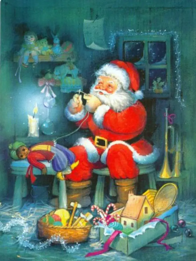 Алмазная живопись с мультяшным Санта-Клаусом, полноразмерная и круг...