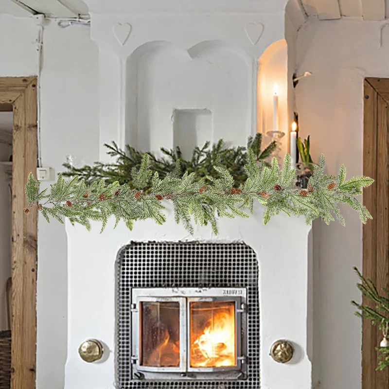 Искусственное ротанговое растение сосновые конусы гирлянда Рождественские декоративные снежинки сосновые ветки зеленые листья венок настенный Декор для дома