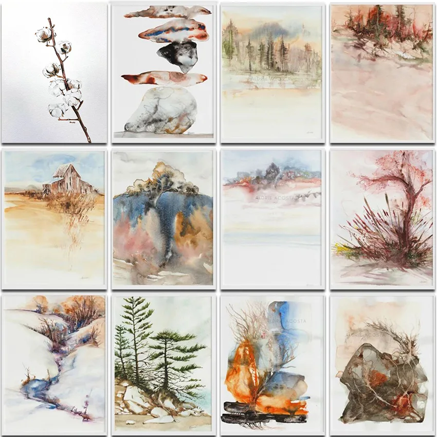 Алмазная живопись, пейзаж, цветок, полная вышивка, квадратная и Круглая Мозаика 5D, домашняя роспись, Декор, вышивка крестиком, снежное поле, дерево, река