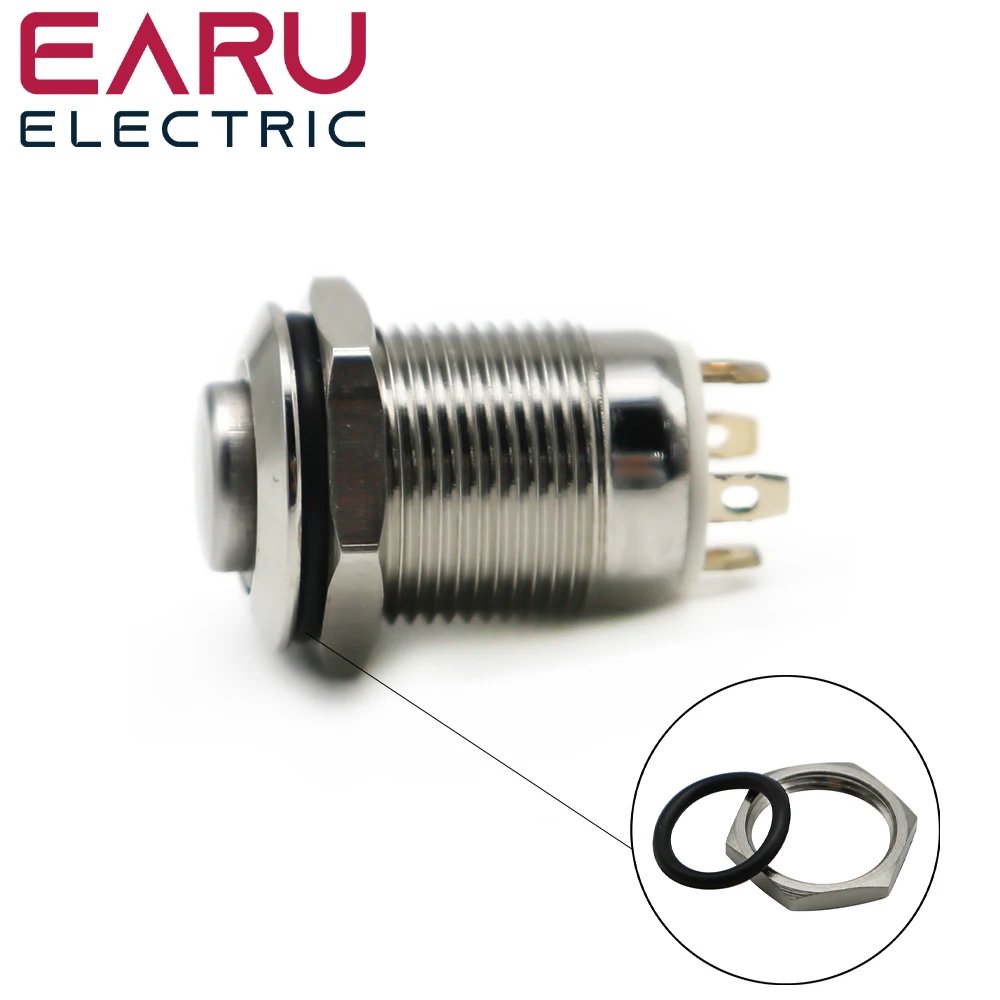 1 шт. 12 мм высокий круглый водонепроницаемый мгновенный металлический кнопочный переключатель из нержавеющей стали светодиодный светильник светящийся автомобильный рожок автоматический сброс