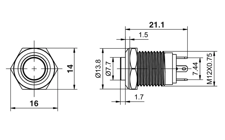 12 мм высокий круглый водонепроницаемый мгновенный металлический светодиодный сигнал из нержавеющей стали ярсветильник автомобильный сигнал 3 в 5 в 12 В 24 В