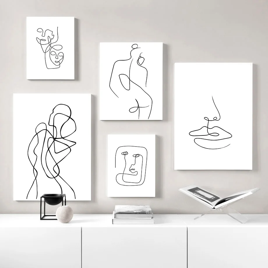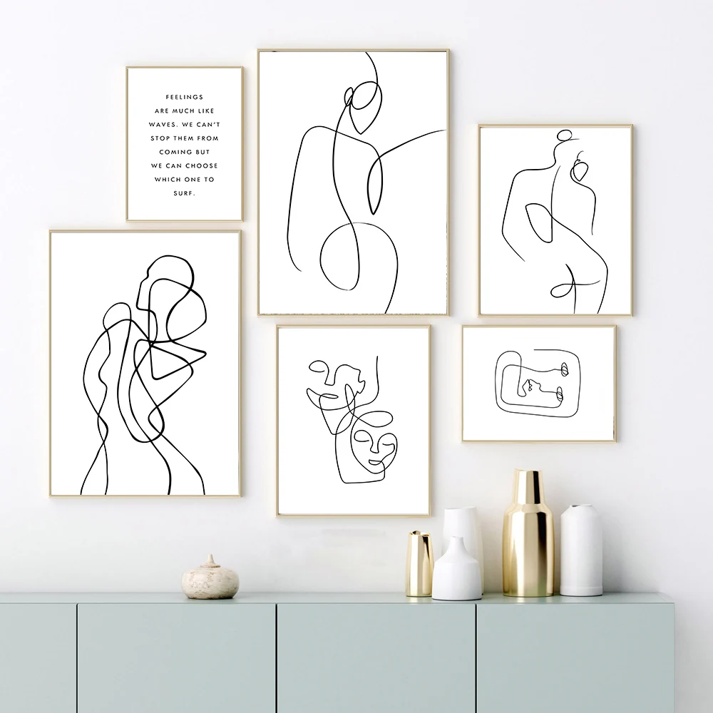 Абстрактная Минималистичная линия, Женская настенная Картина на хол...