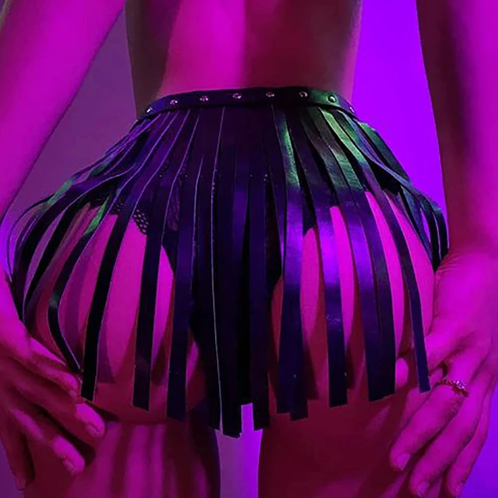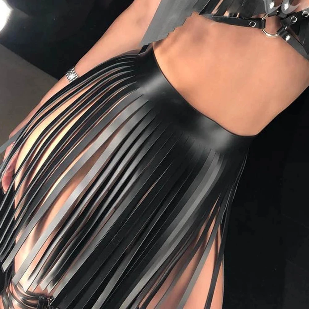 Черная кожаная короткая юбка с отделкой женский бюстгальтер на бретельках Женская одежда для вечеринки бондаж БДСМ белье на бретельках