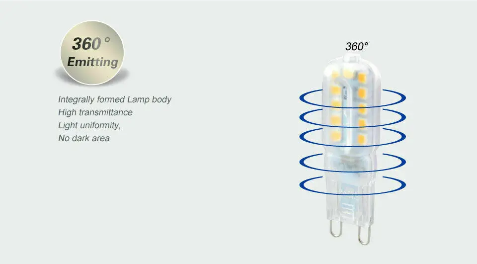Простая установка, стандартная база G9, может быть легко установлена вместо обычных галогенных ламп.