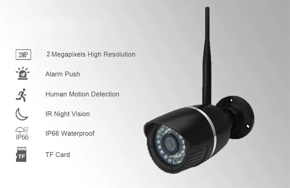 2 мегапикселя супер HD ИК Ночное ВидениеIP66 водонепроницаемый датчик движения человекаДвусторонний просмотр звука с дистанционным управлениемTF карта Onvif 2,4