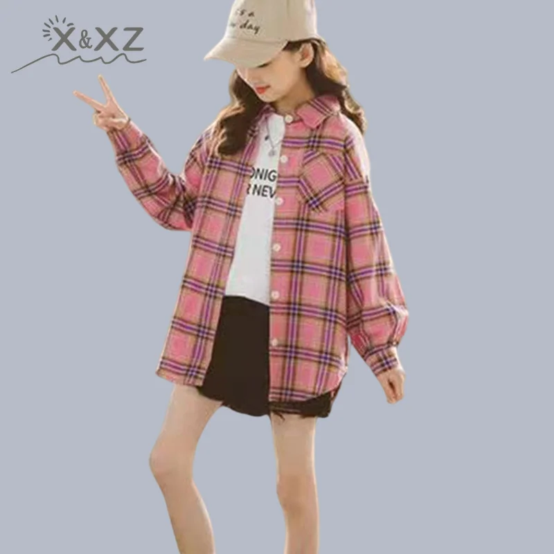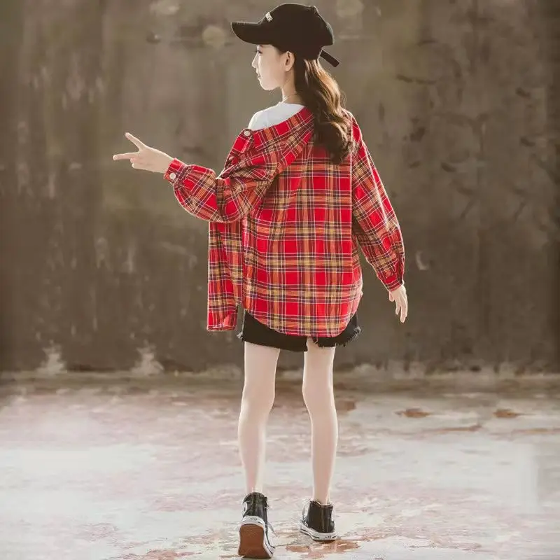 Осенние клетчатые рубашки, блузки и топы для девочек, свободная кле...