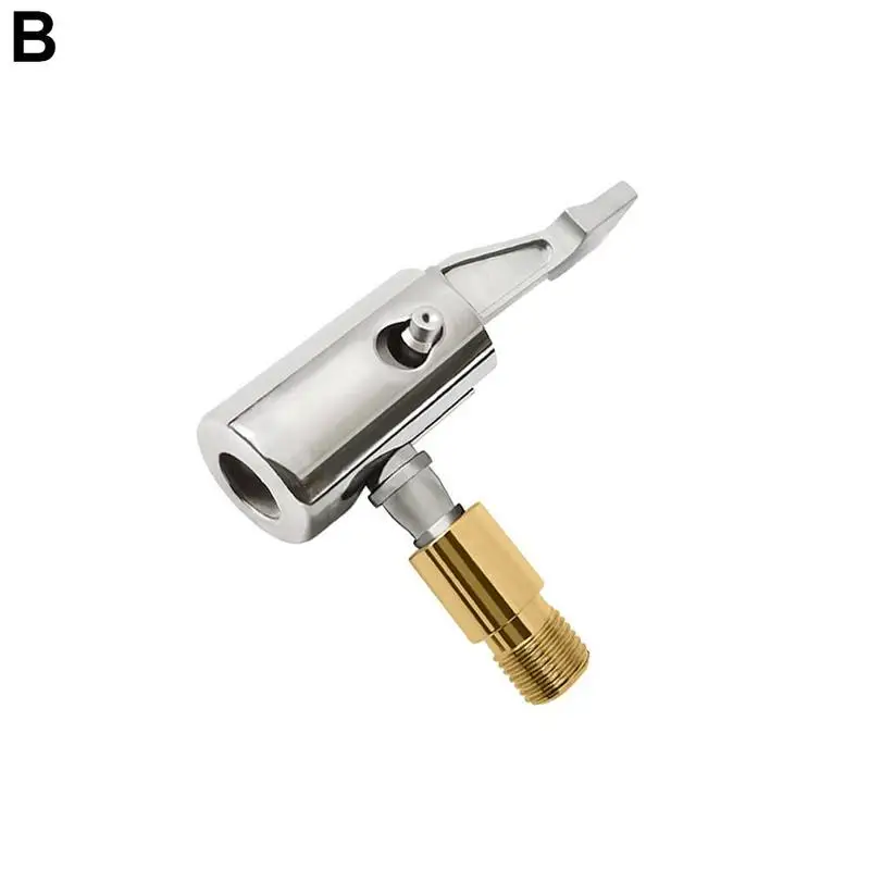 Опишите:Цельнометаллическая структура под углом 90 градусов; Блокировки для накачки шин патрон, подходит для портативный насос для шин, велосипеды, мотоциклы, автомобилиКолючая часть шланга делает его идеальным выбором для ремонта шлангаОткрытые и запорные зажимы позволяют легко надувать шины без рукМатериал: цинковый сплавИспользование под 200psi, тяжелые грузовики/транспортные средства запрещеныУпаковочный лист:1 * Разъем воздушного насоса