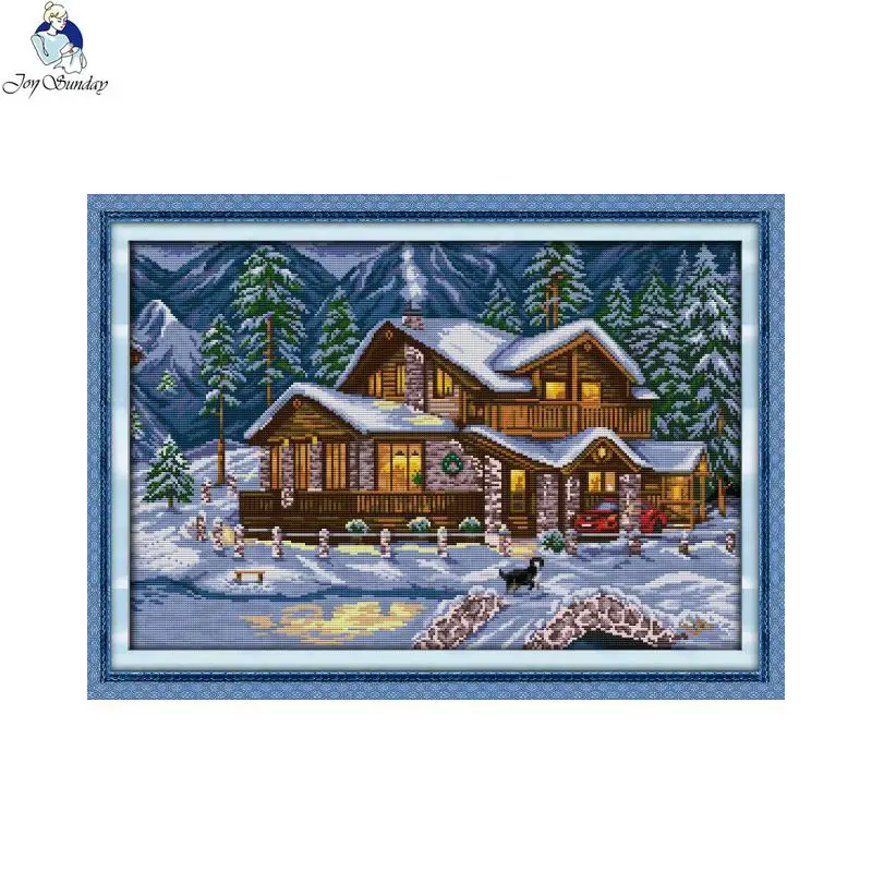 Теплый зимний пейзаж узор Сделай Сам ручной работы Вышивка крестом Комплект Aida 14CT 11CT граф холщовая ткань с принтом вышивка набор домашний декор