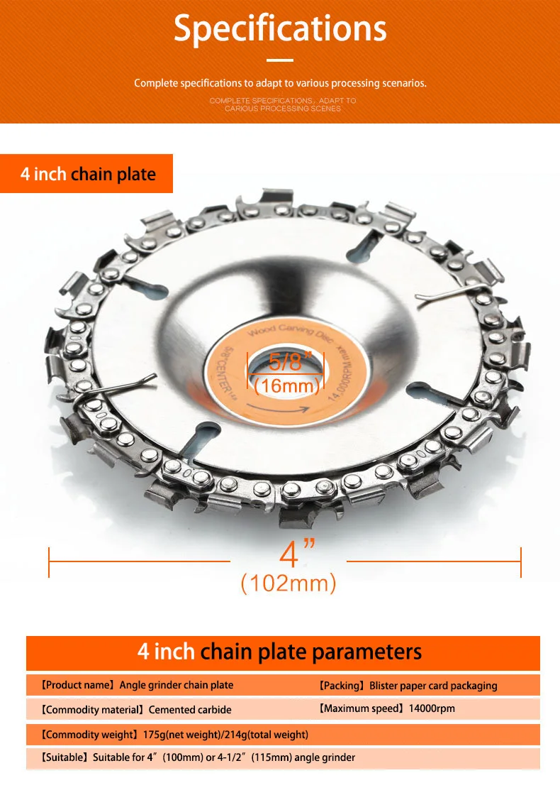 4-дюймовые цепные диски с 22 зубьями, карбидные наконечники, пила, ...
