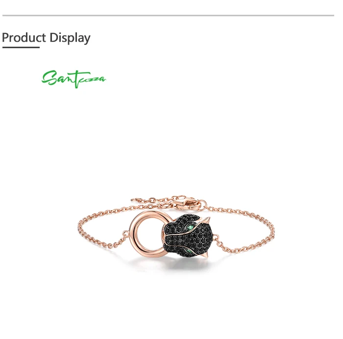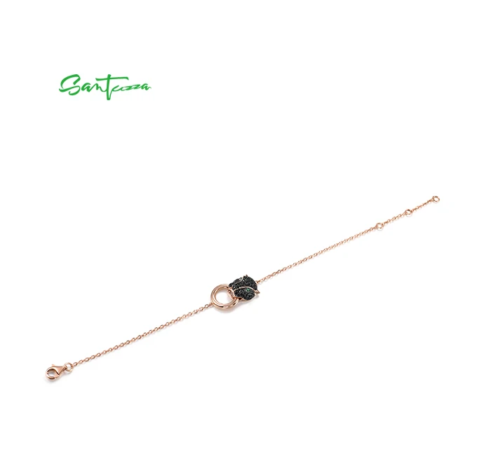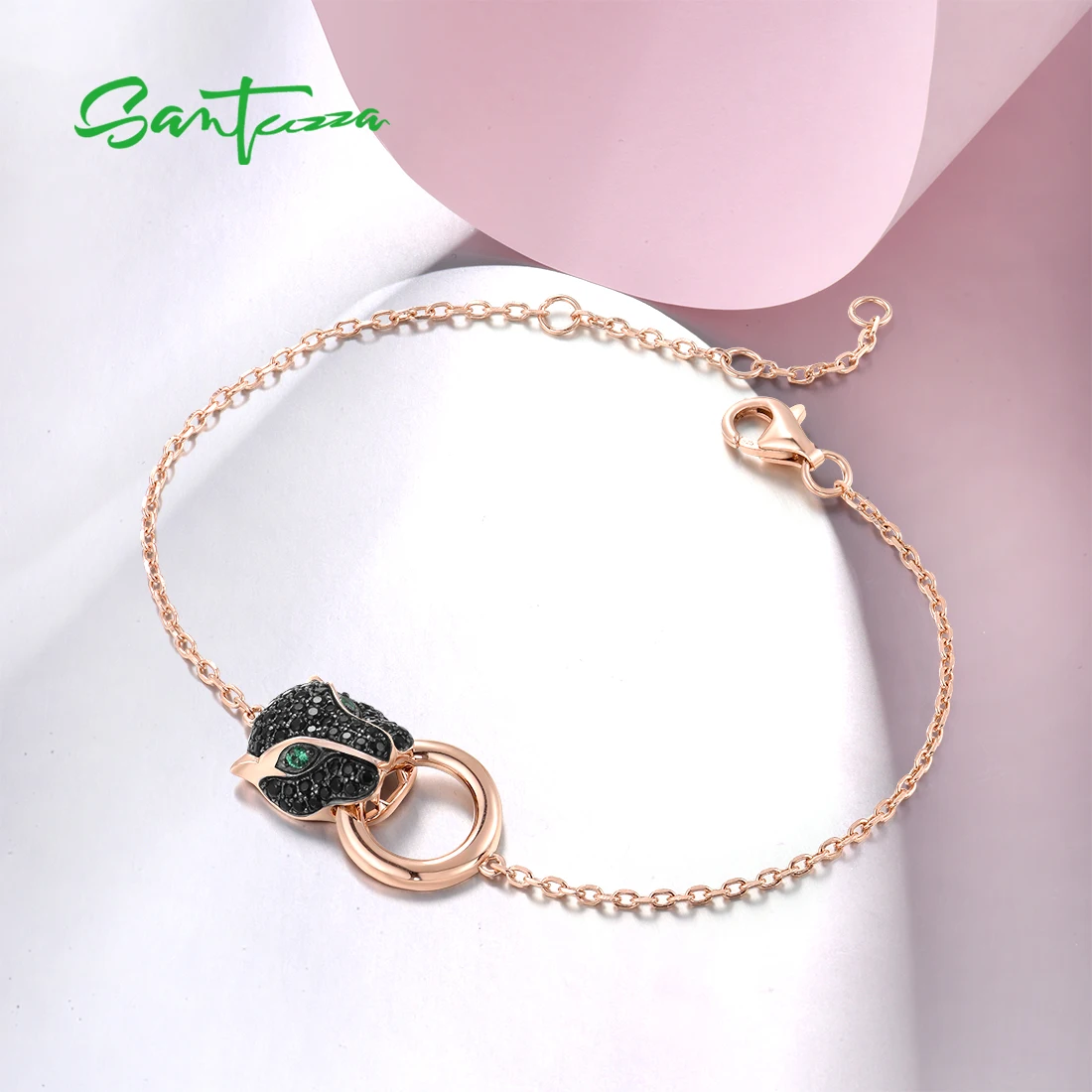 Женский браслет из серебра 100% пробы, с черной шпинелью и леопардовой головой