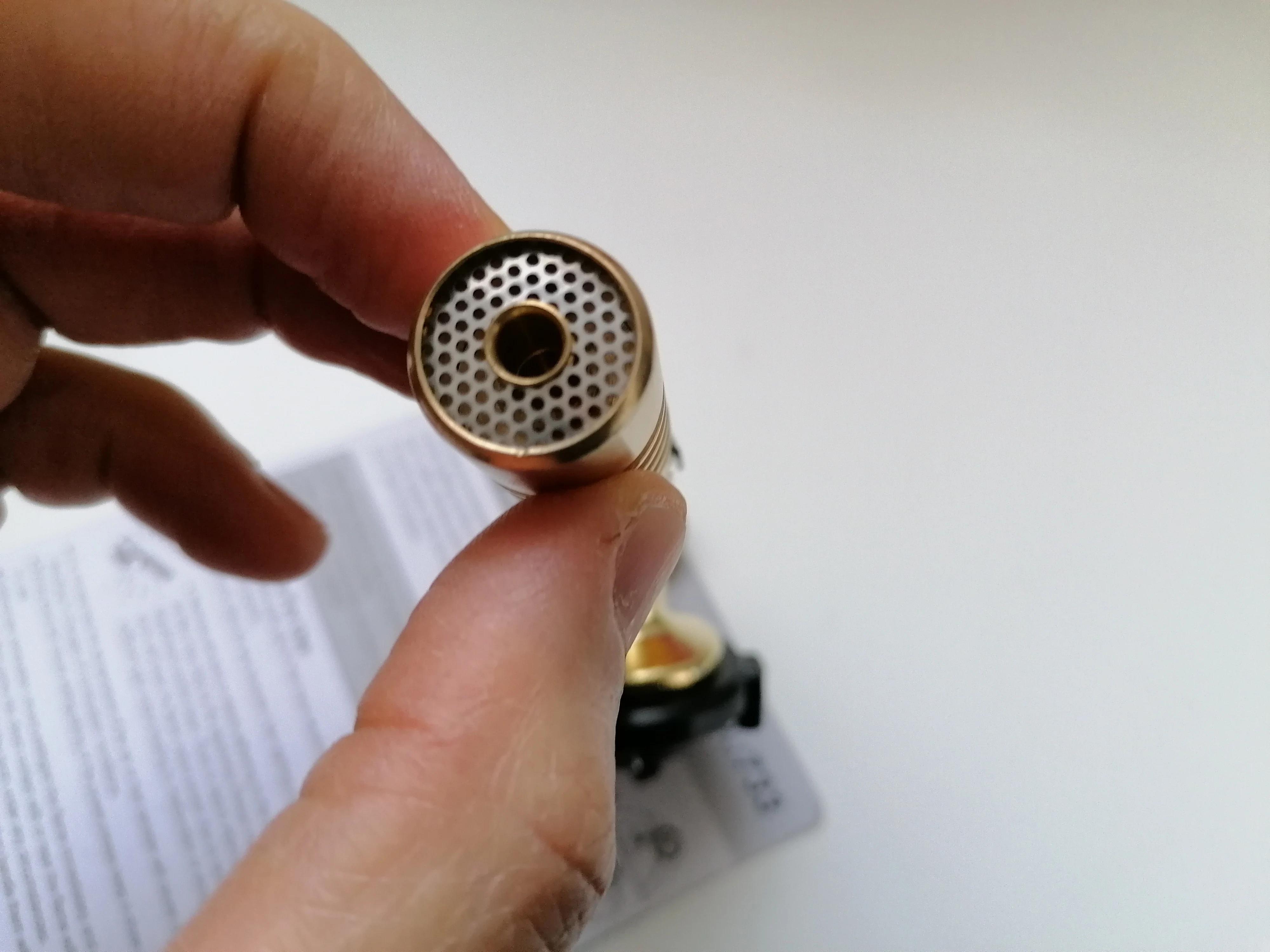 Сам корпус из силумина, крашенный под латунь. Наконечник из латуни ( 6 сантиметров). Качество хорошее, работает нормально.