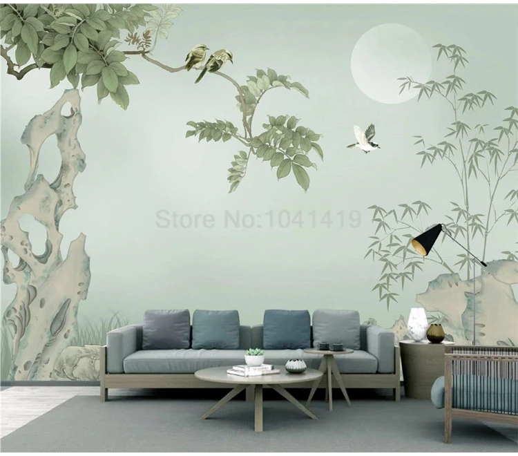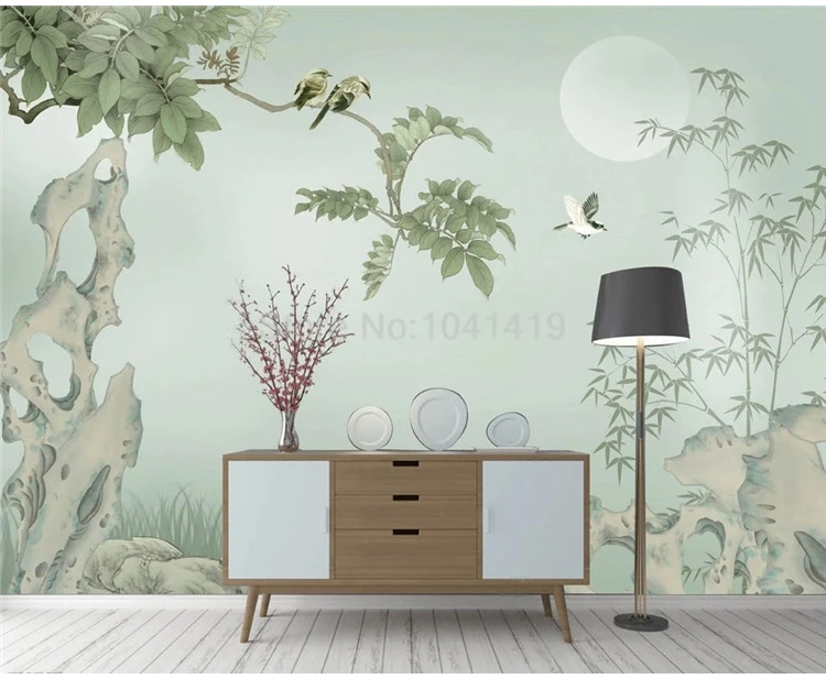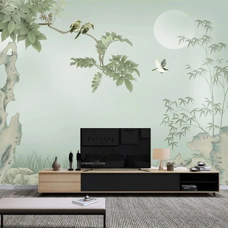 Пользовательские фото обои китайский стиль ручная роспись камень бамбуковые листья птица росписи красивый фон настенная живопись Домашний декор
