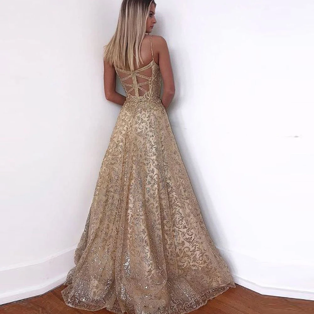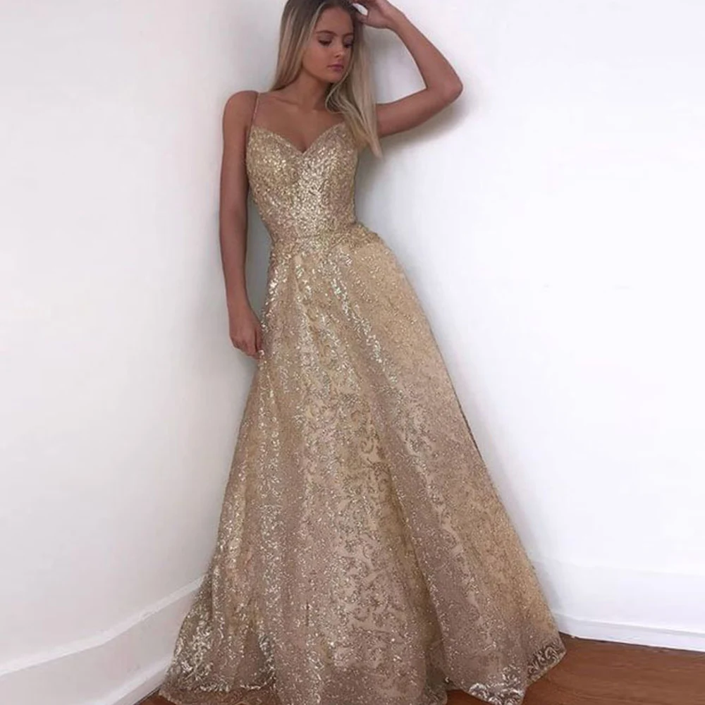Золотое свадебное платье Dioflyusa на тонких бретельках с V-образным вырезом и блестками для женщин длинное вечернее платье принцессы подружки невесты для коктейльной бальное платье вечеринки