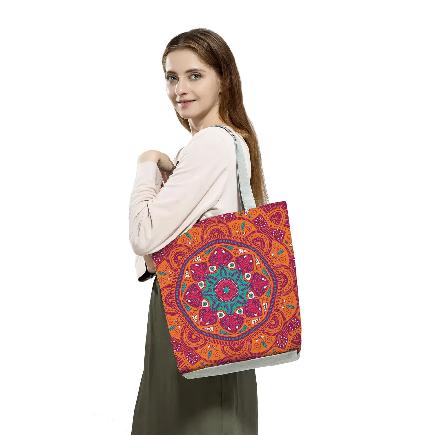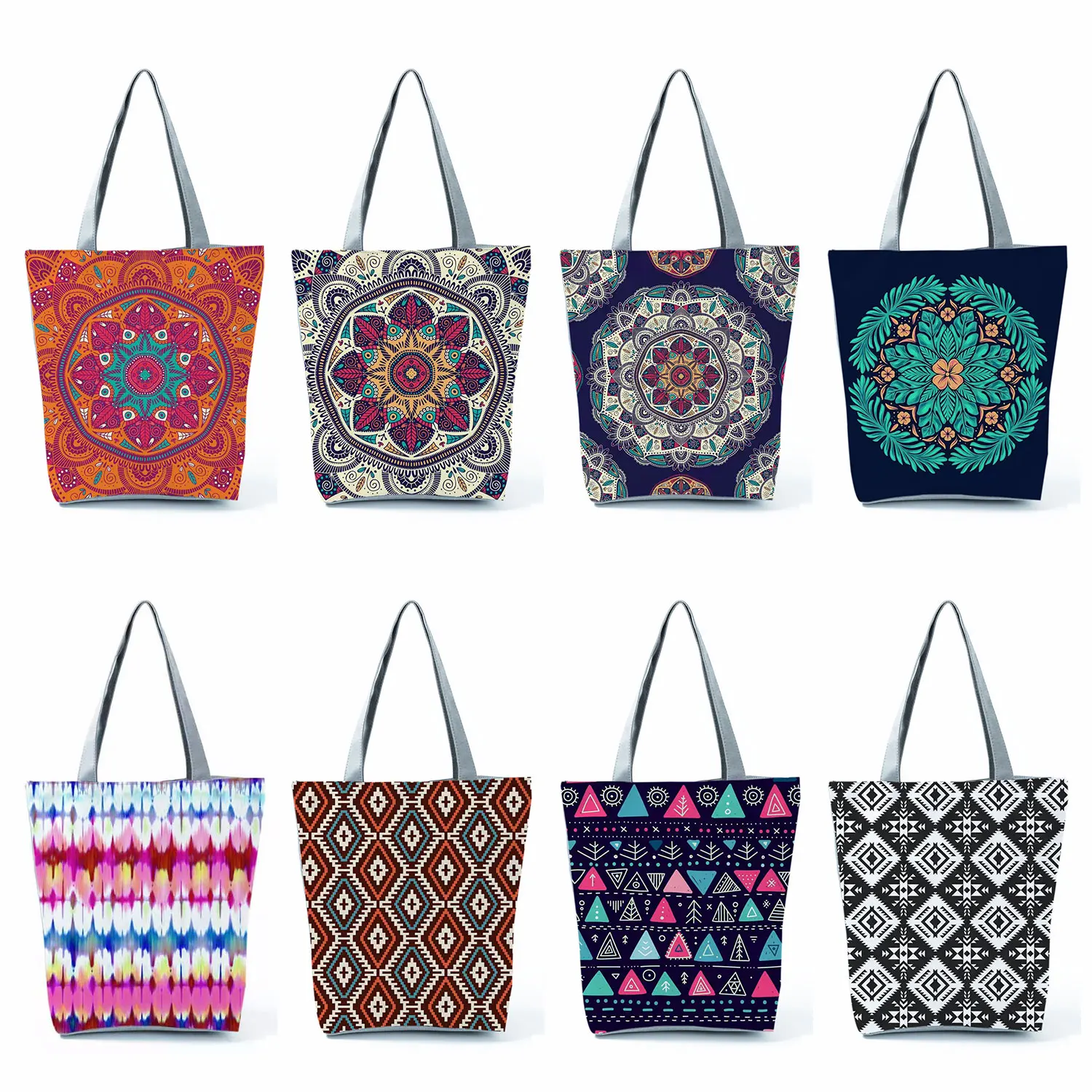 Ретро сумки с геометрическим принтом, Классическая многоразовая сумка для покупок большой вместимости, Цветочная Женская Ретро сумка на плечо, сумка-тоут с индивидуальным узором