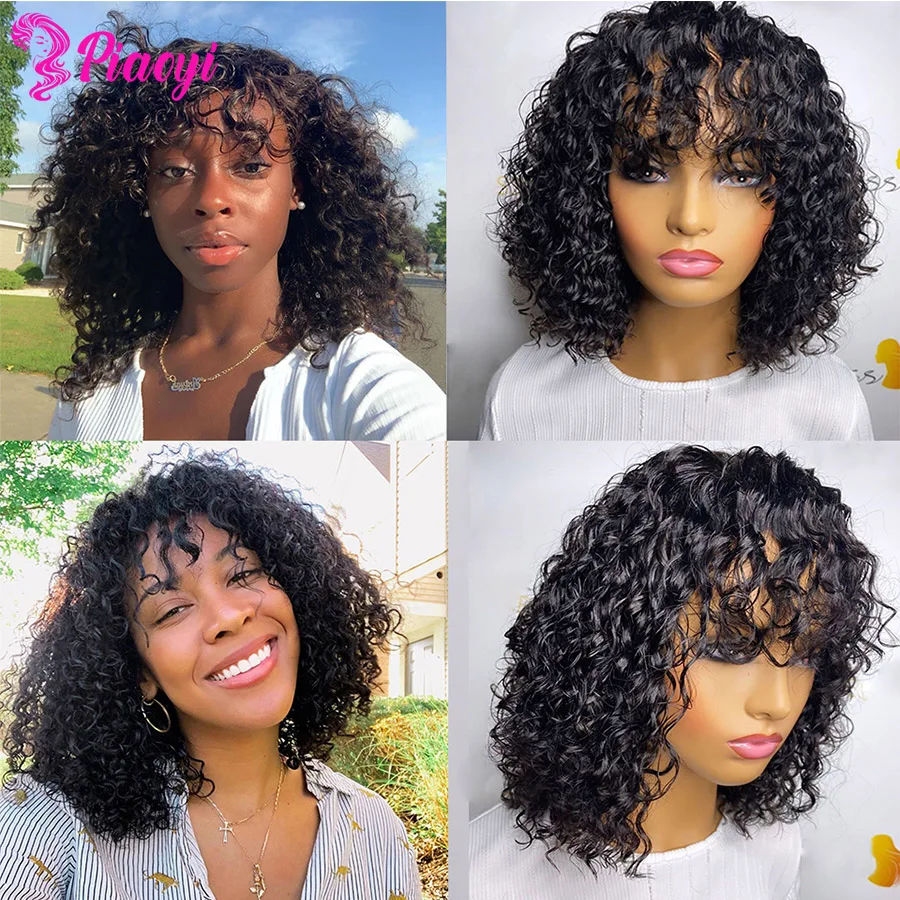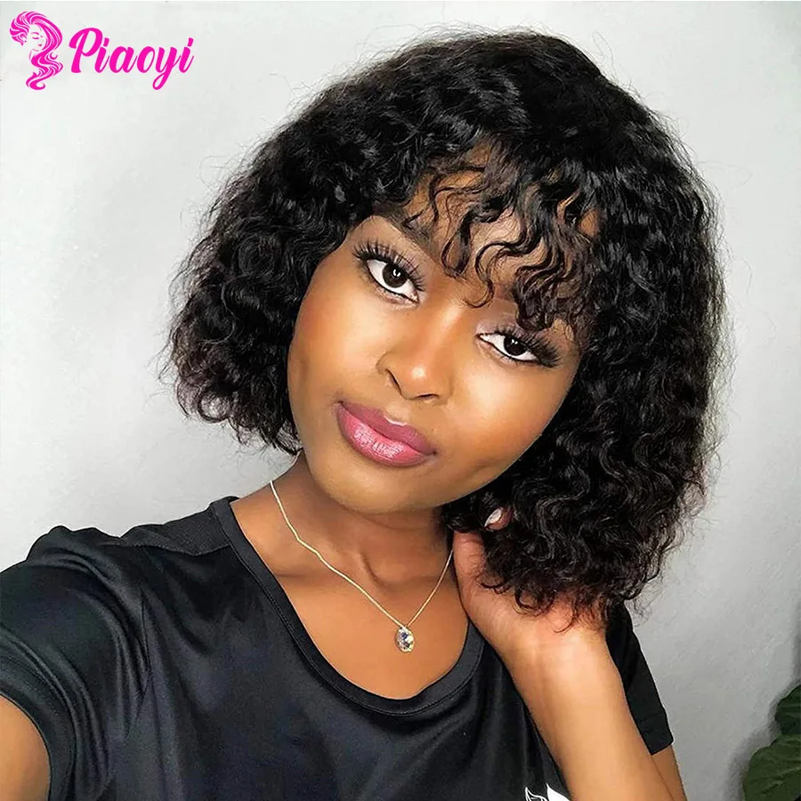 Парик фея, Короткие вьющиеся парики из человеческих волос, дешевые парики из человеческих волос для чернокожих женщин, парики с глубокой волной, парики ручной работы, Короткие парики
