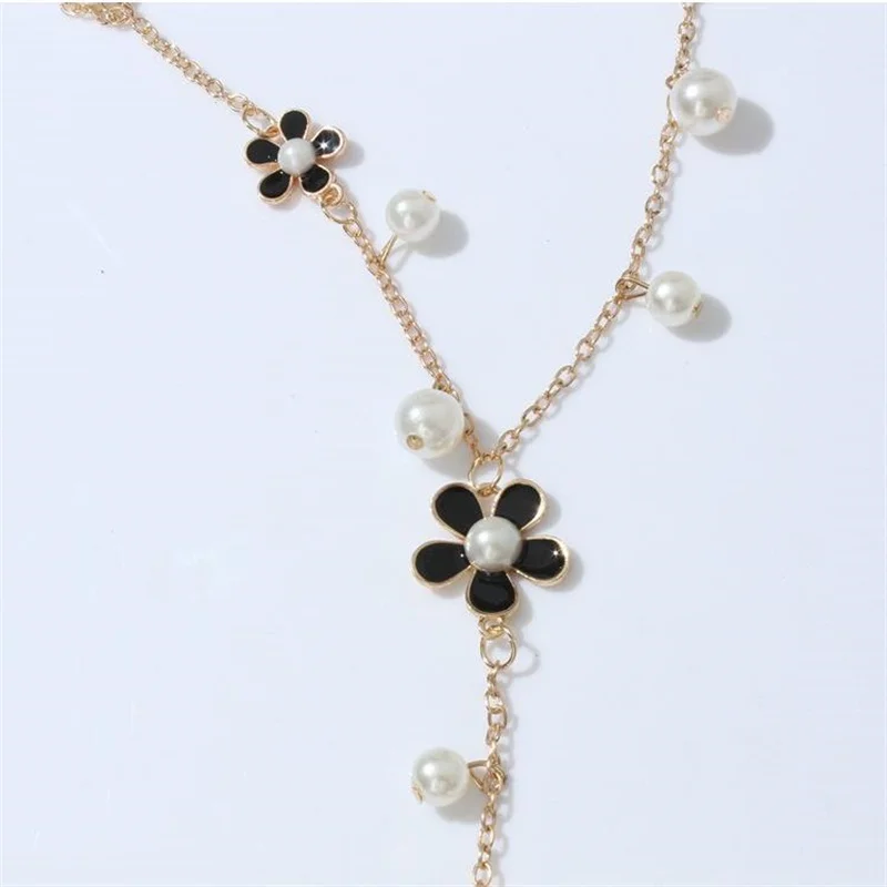 Женское Ожерелье с кисточкой, длинная цепочка для свитера с пятилепестковым цветком и пресноводным жемчугом, аксессуары в Корейском стиле