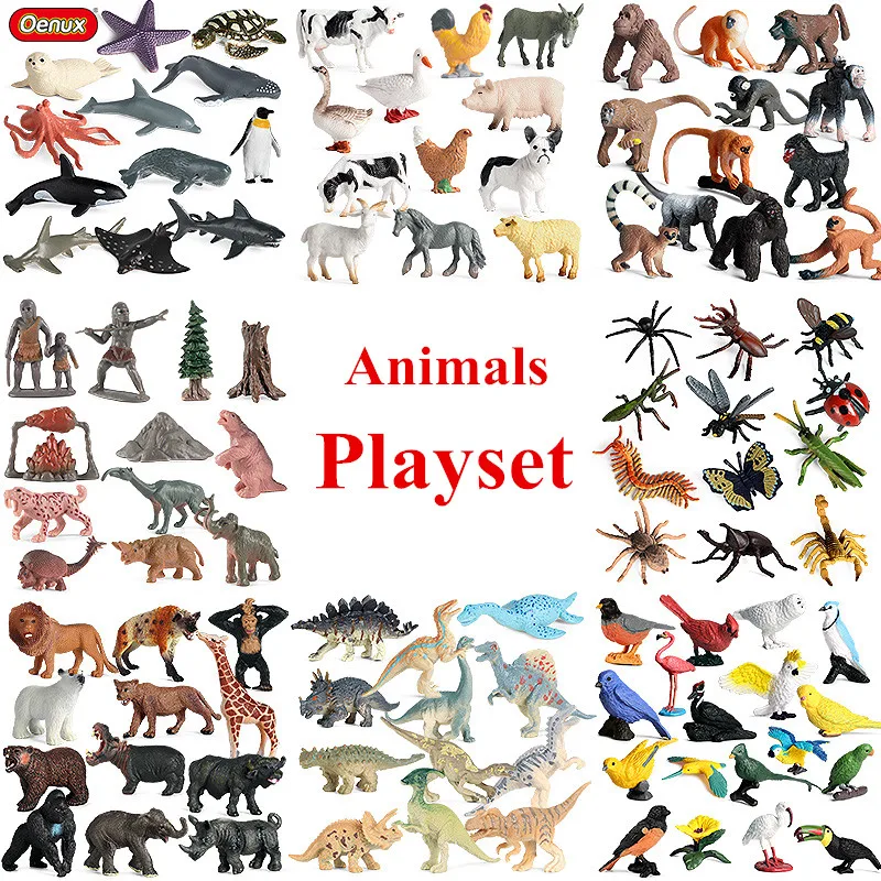 Тема продукта:Oenux океан дикая ферма динозавр животные модель Птица насекомое лошадь собака фигурки миниатюрный игровой набор обучающая игрушка подарок